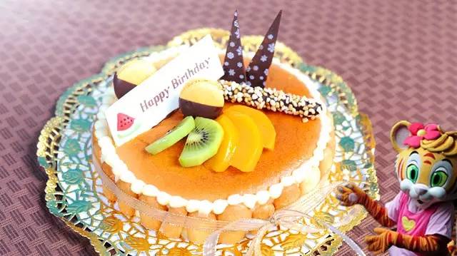 奉送生日蛋糕以及紀念白虎公仔,卡卡虎和朋友們陪您吹蠟燭、唱生日歌。