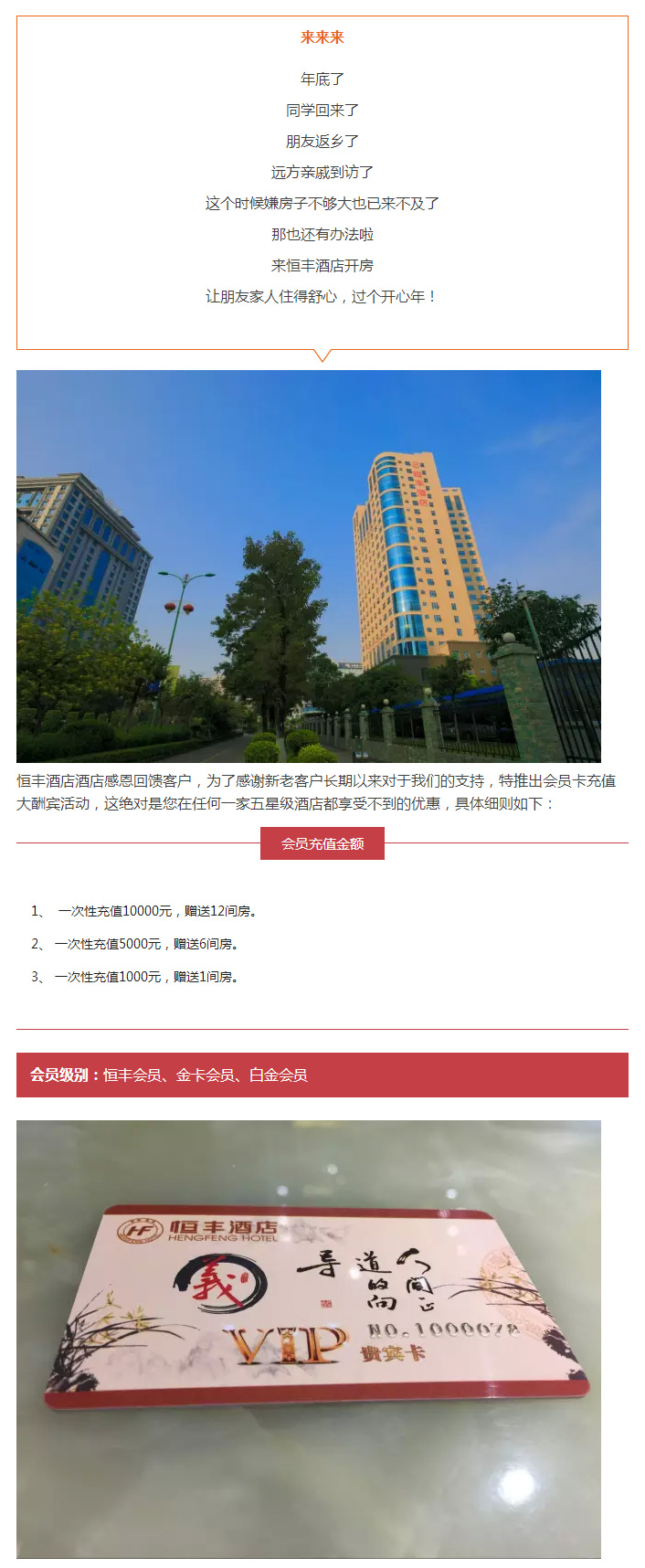 感恩回饋,幸福相伴,恒豐酒店會員卡充值尊享特惠!